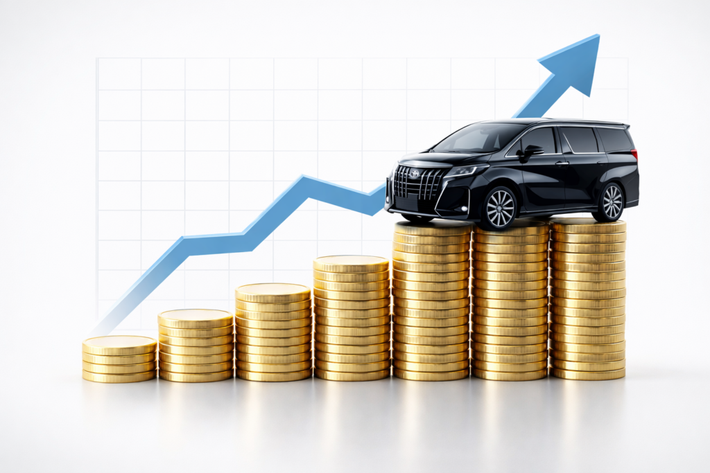 ここまでネガティブな面を強調しましたが、実はアルファードほど残クレと相性の良い車はありません。なぜなら、中古車市場での価値(リセールバリュー)が異常に高いからです。